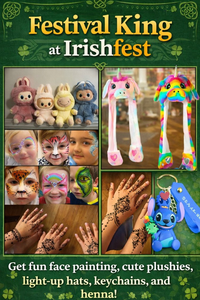 Aunt Nancy’s Face Art, is always a crowd favorite at Topeka IrishFest. Aunt Nancy creates unique and whimsical face and body art for children and adults!